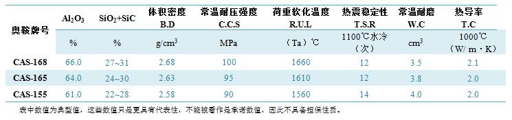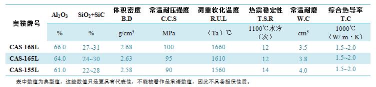 1000oC综合热导率,W/ m·K:复合砖型1,1.5~1.7; 复合砖型2, 1.6~1.8; 复合砖型3, 1.7~2.0.