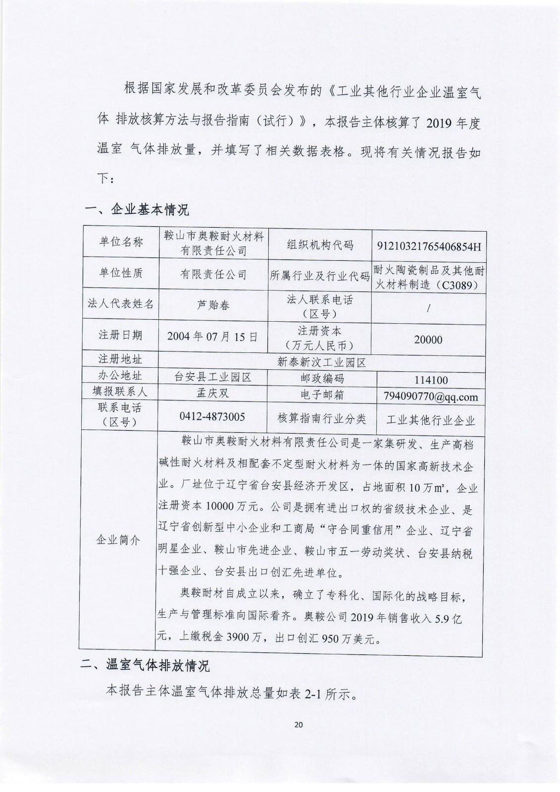 温室气体排放报告