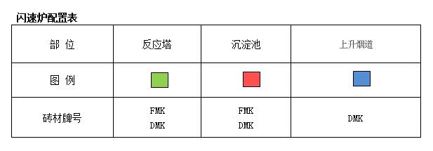 ●反应塔:是闪速炉的最重要工作部分也是工作环境最恶劣的部分,干燥后的炉料和预热空气经精矿喷嘴进行混合并高速喷入反应塔内,高温下进行脱硫、熔化、造渣等反应形成熔体进入沉淀池,进一步完成造渣过程,反应产生的冰铜和炉渣在沉淀池中分层。耐火工作衬要经受过热损毁,氧化与还原的不稳化学气氛损毁,炼铜渣含硫化合物、冰铜的渗透等化学侵蚀损毁,剧烈冲刷及温度 剧烈变化等损毁。反应塔工作衬耐材可选用高牌号的DMK和FMK系列产品。